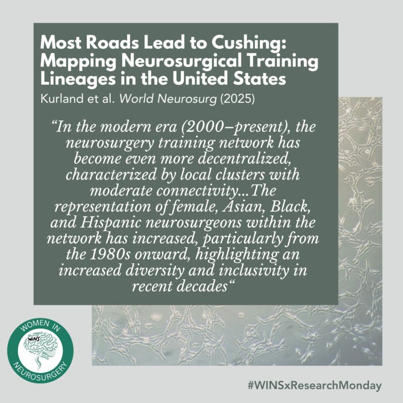 lineage analysis shows women disproportionately represented in newer neurosurgery generations, reflecting continued diversification of mentorship networks and the evolving face of the field. #WINSxResearchMondays