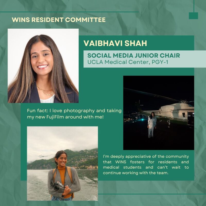 Introducing Dr. Vaibhavi Shah, Social Media Junior Chair of the WINS Resident Committee.