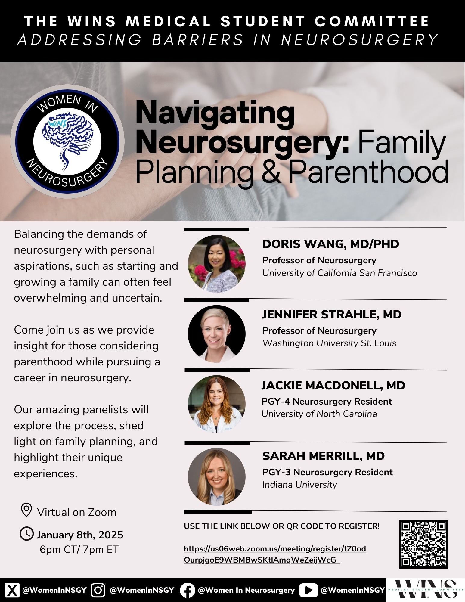 Join us for a virtual event on parenthood in neurosurgery! Hear from experts on family planning, work-life balance, and navigating the field’s demands. Gain insights, ask questions, and connect. Don’t miss this inspiring conversation—register now! #Neurosurgery